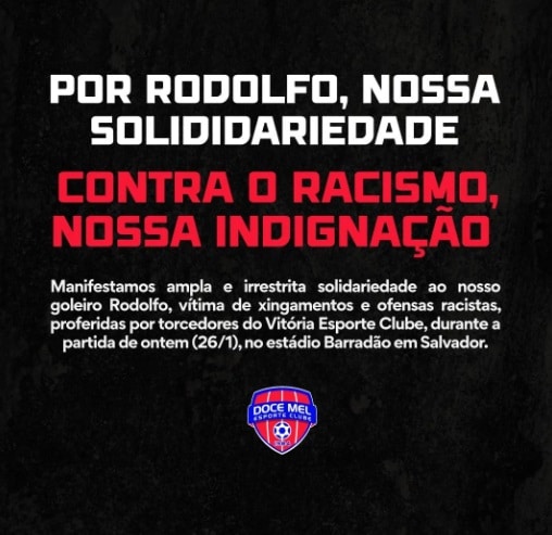 Vitória se manifesta e repudia ofensas racistas contra goleiro do Doce Mel feita por um torcedor