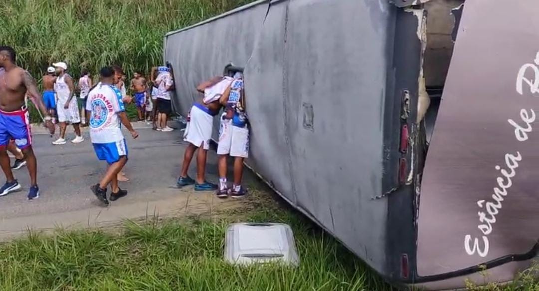 VÍDEO: Ônibus da Bamor capota em Pernambuco e deixa feridos